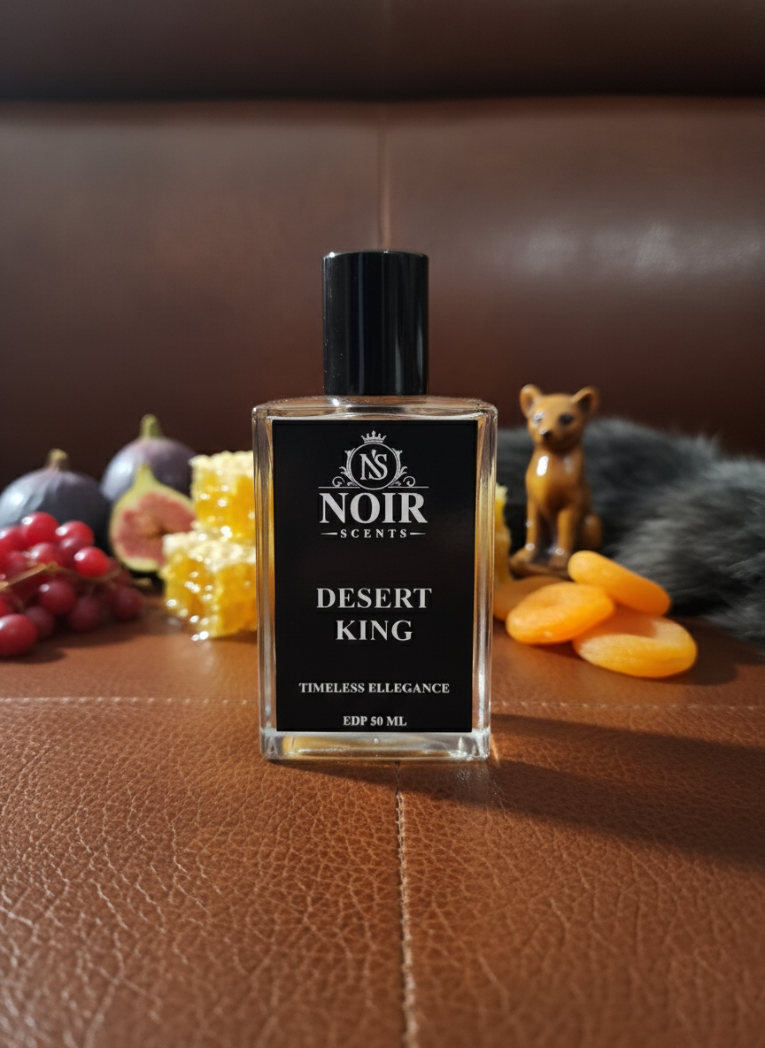 Bold, opulent, and undeniably powerful – Desert King embodies the essence of luxury and dominance. Opening with a striking blend of saffron and raspberry, it flows into a smoky heart of rich leather, suede, and jasmine, evoking strength and sensuality. The base unfolds with warm amber, woody notes, and a subtle musk that lingers like an unforgettable signature.