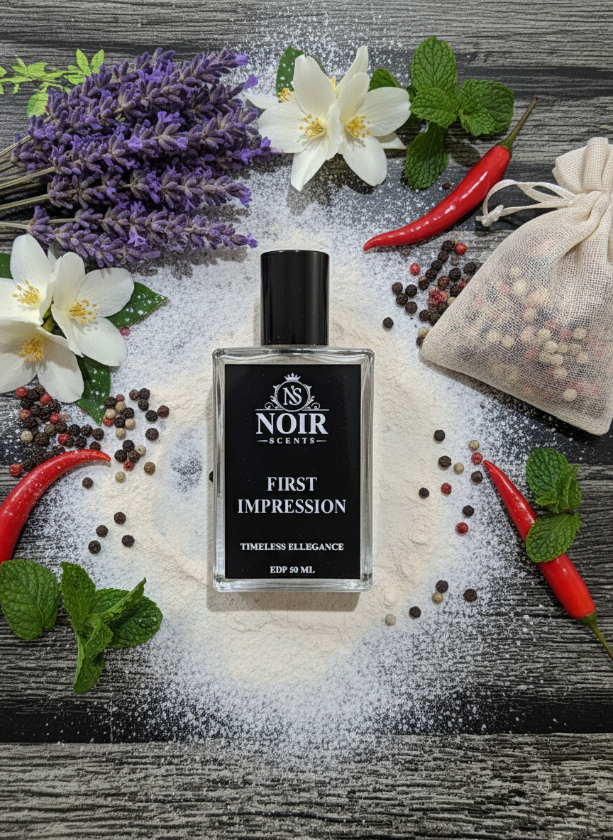 Command attention from the very first moment with First Impression. A vibrant burst of fresh citrus and spicy black pepper opens the fragrance, setting the tone with energy and drive. As it settles, crisp florals and aromatic woods emerge, layered with a subtle warmth of musk and patchouli that exudes confidence and sophistication