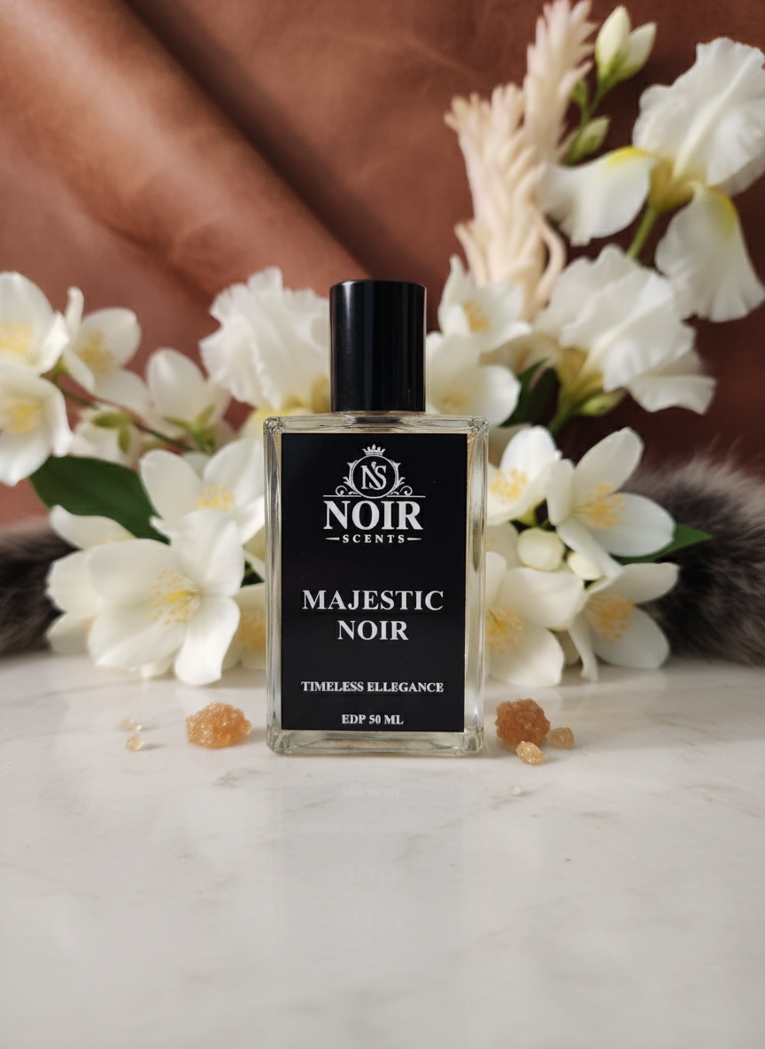 Crisp, clean, and effortlessly elegant – Majestic Noir is a fragrance that radiates fresh confidence. It opens with bright notes of grapefruit and rosemary, uplifted by juicy cardamom and cedar leaf. The heart reveals a refined blend of tuberose and ylang-ylang, bringing a smooth sophistication, while the base of suede, leather, and cedarwood leaves a warm, masculine trail.